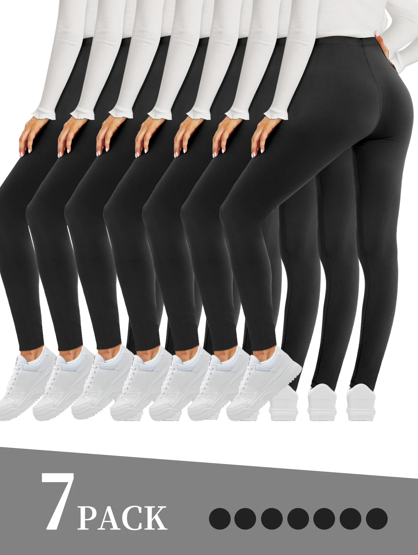 7 Pack Leggings for Women Butt Lift Low Waisted Tummy Control Slimming Black No See-Thru Yoga Pants Workout Running