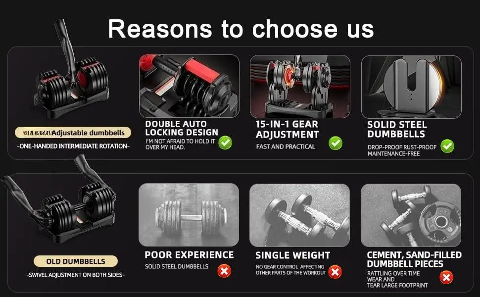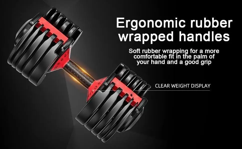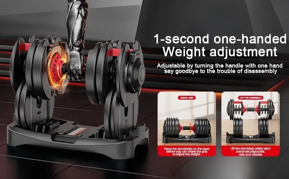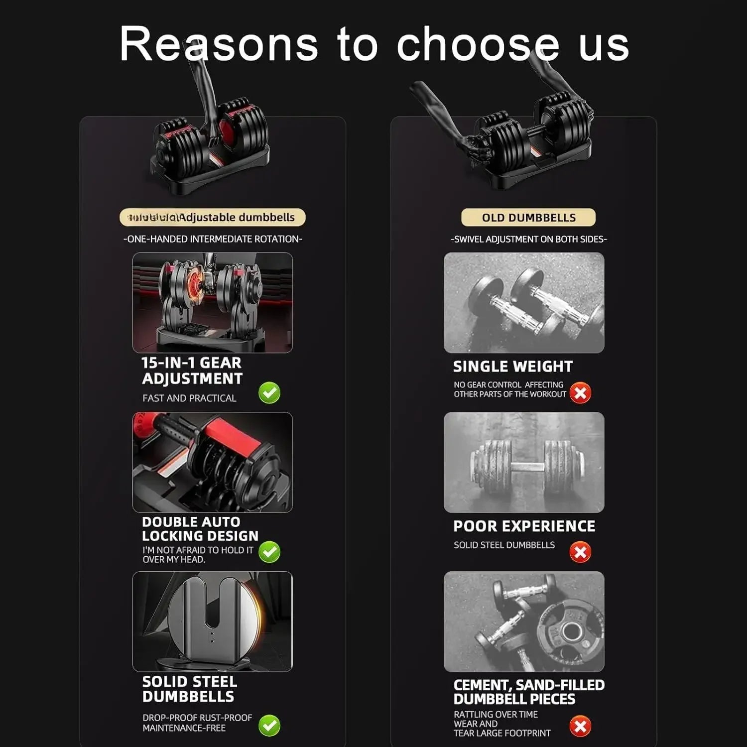Adjustable Dumbbells Set (2 Pieces) Free Weights Dumbbells Set Adjustable Dumbbell Set 52.5 lbs per piece, 105 lbs total 15-in-1