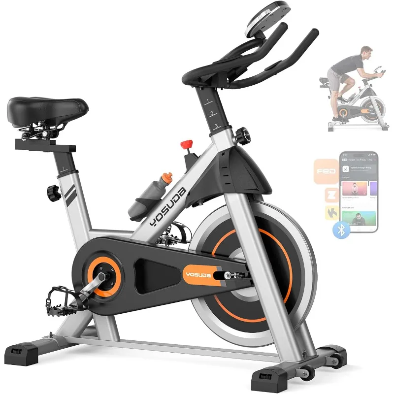 Exercise Bike, Brake Pad Stationary Bike for Home with Exclusive App, Magnetic Indoor Cycling Bike with 300 lb Weight Capacity