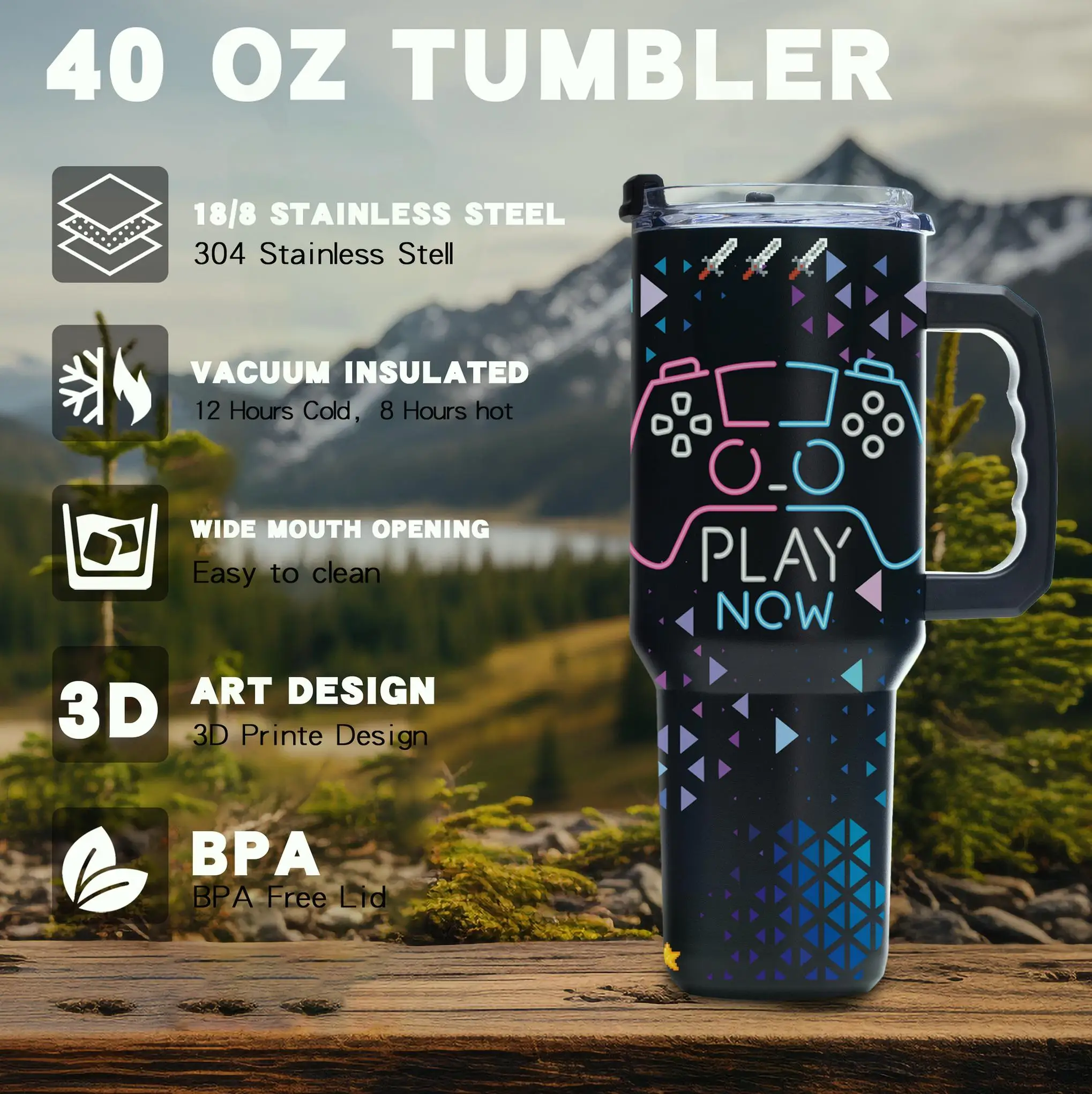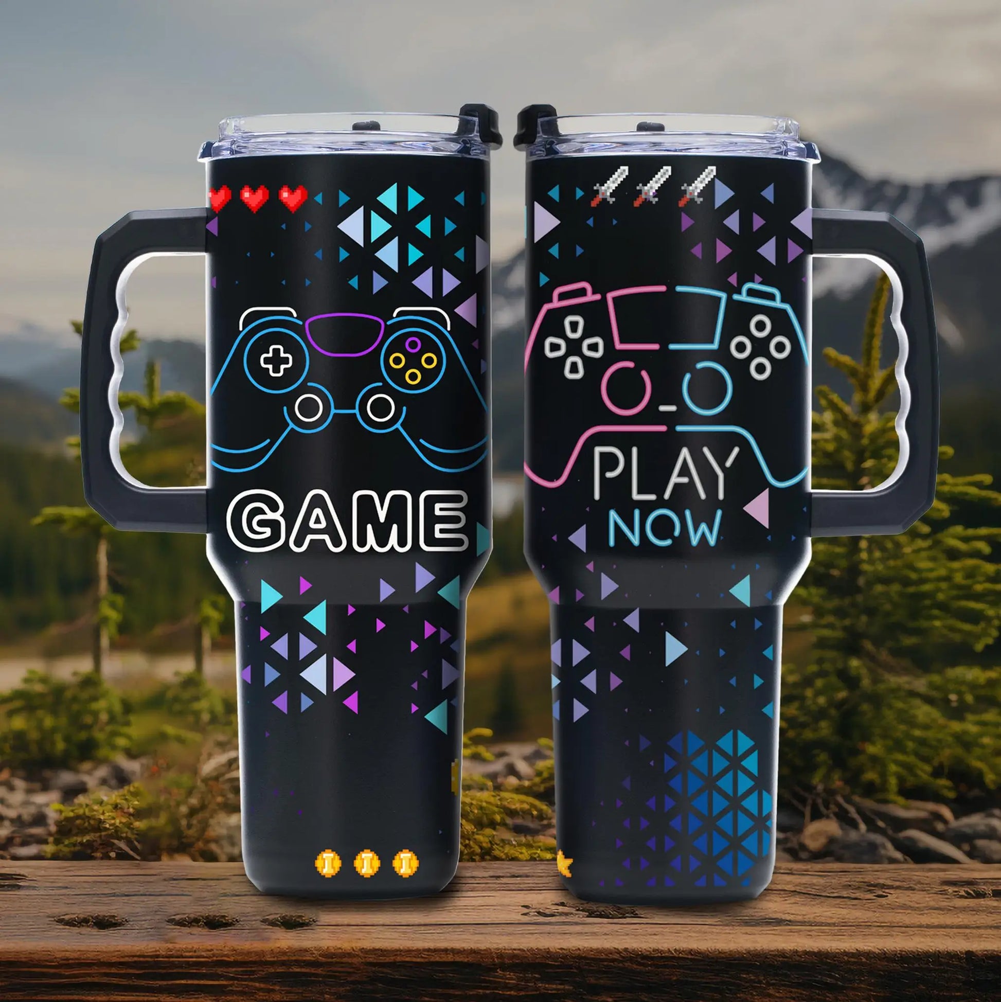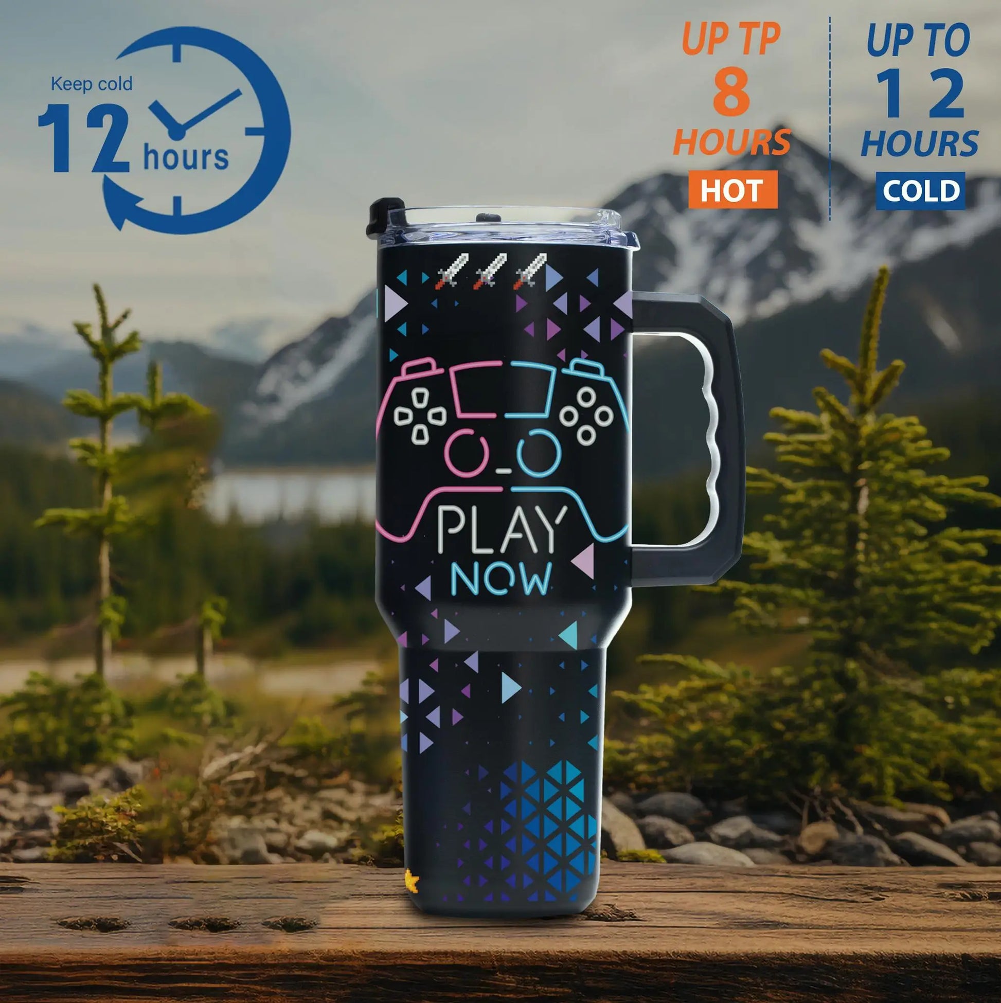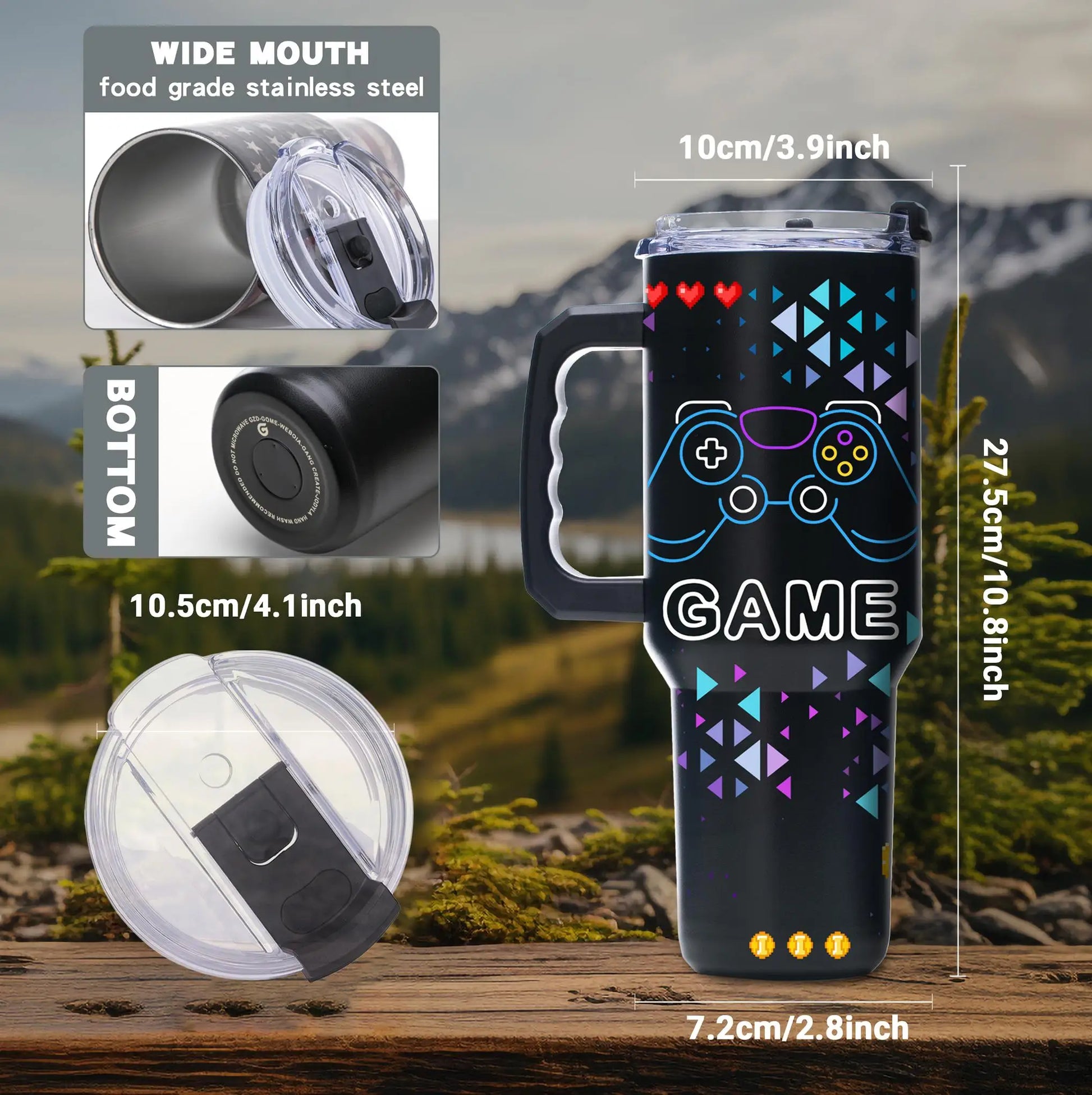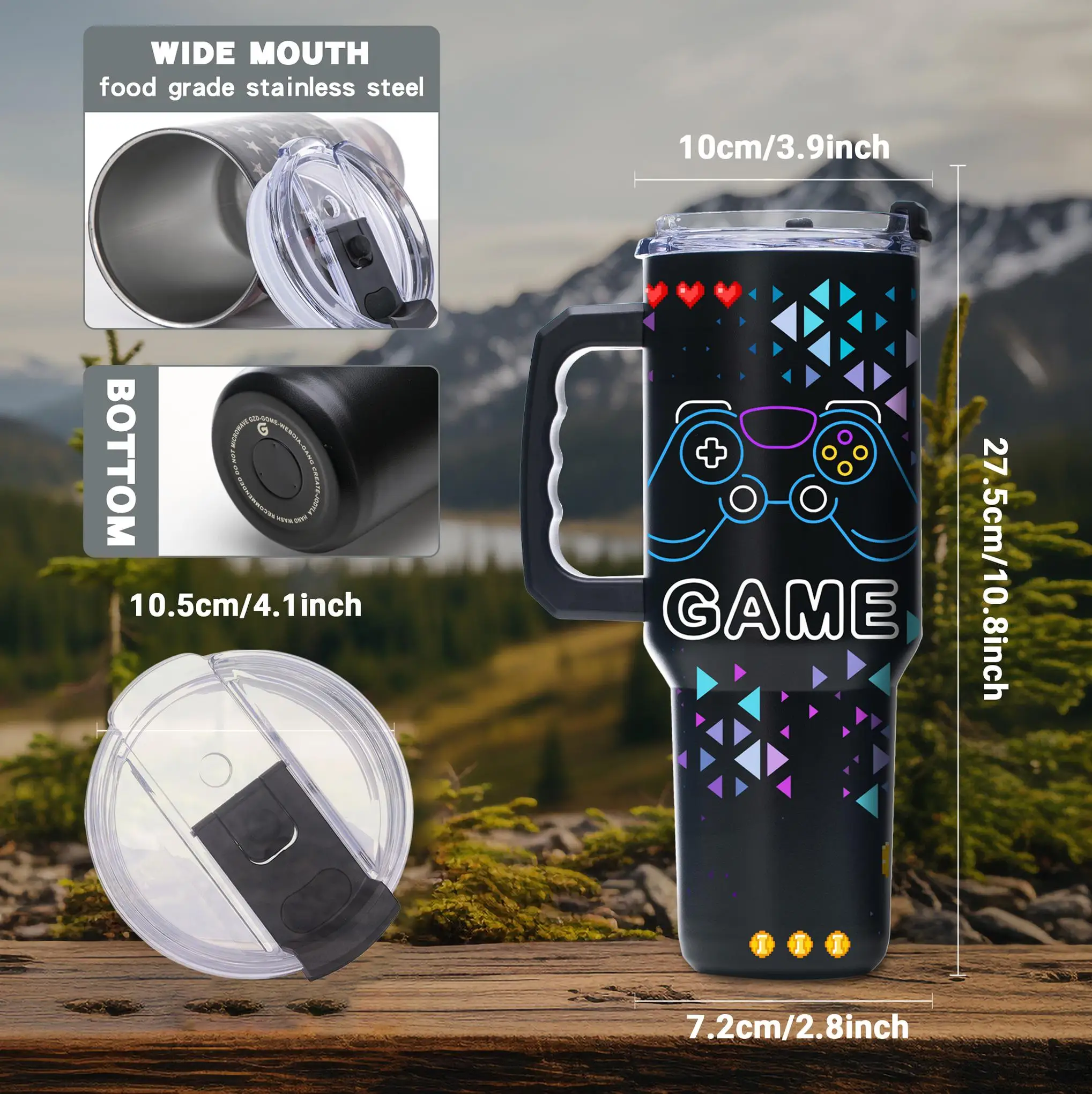 Gaming Controller 40oz Vacuum Tumbler, Stainless Steel Cup with Handle, Straw, Flip Lid, Wide Mouth, Gift for Husband