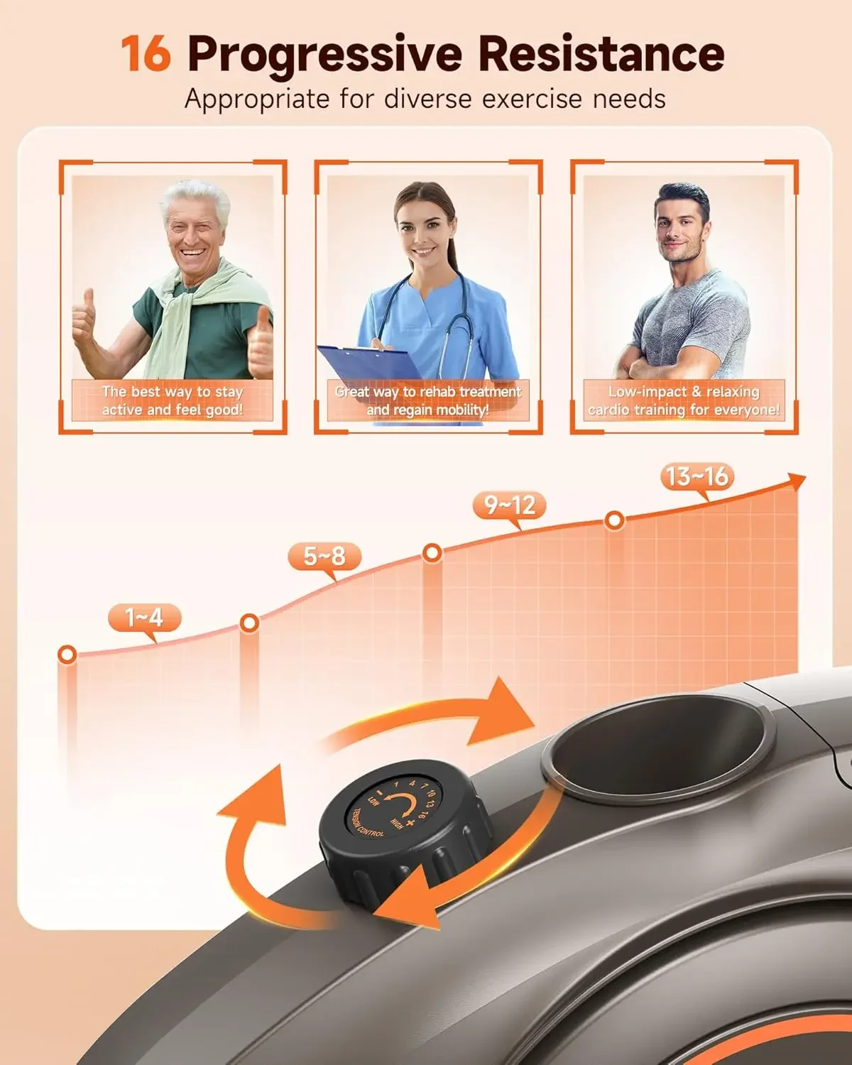 - 【16-Level Progressive Resistance】Niceday Recumbent Bike offers 16 levels of progressive resistance, suitable for the diverse exercise needs of the whole family. The mechanical knob allows precise control of resistance changes, ensuring seamless transitions between intensity levels. Ideal for gentle physical therapy and relaxing cardio exercise.
