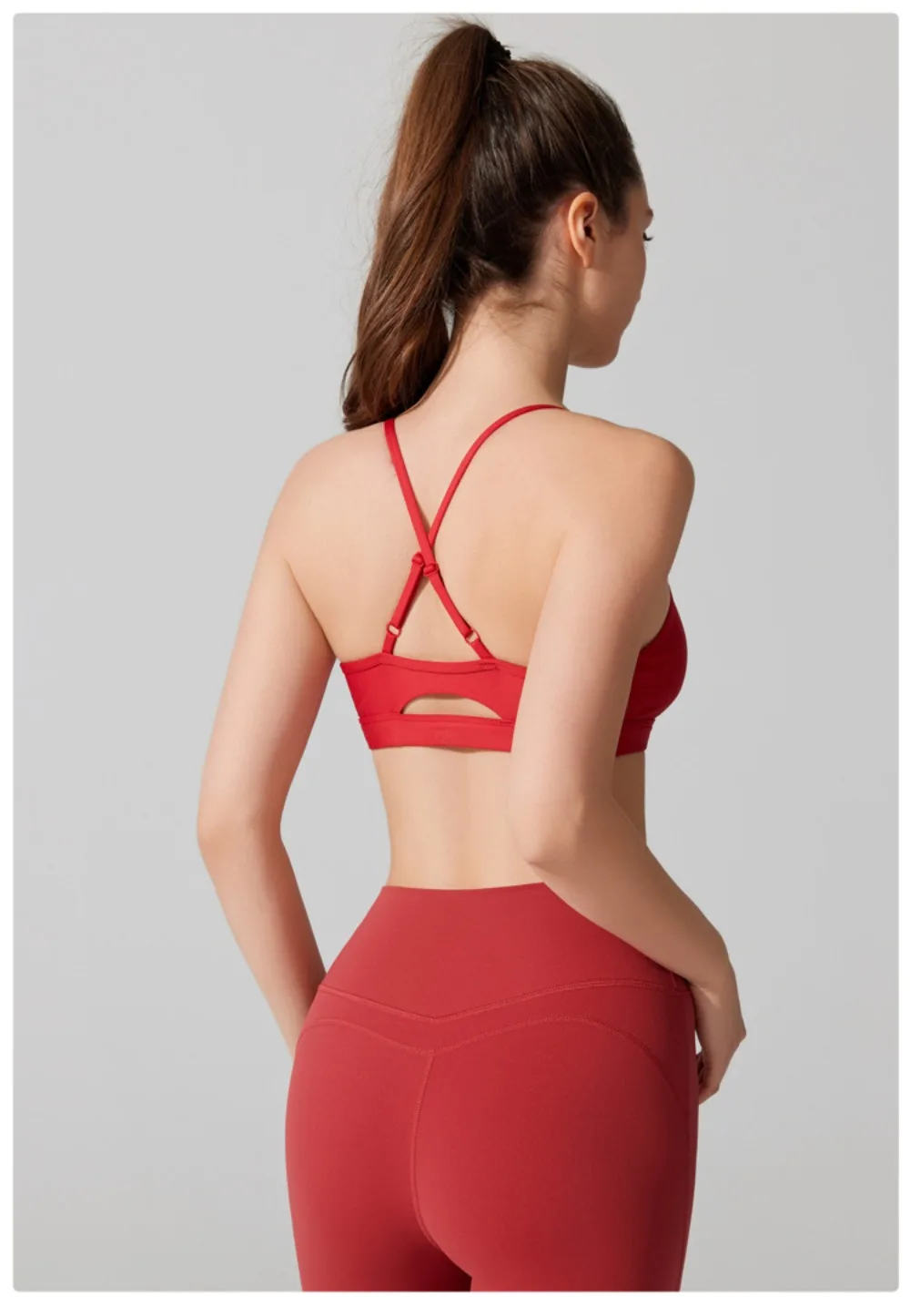 Women's Sports Bra – Racerback Shockproof Push-Up Yoga Top – Adjustable Straps for Running, Fitness & High-Impact Workouts